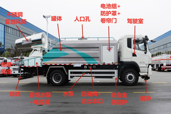 其它 | ABS型號:CM4XL-4S/4M;ABS生產企業:廣州瑞立科密汽車電子股份有限公;儲能裝置種類:磷酸鐵鋰蓄電池;儲能裝置生產企業:汕尾比亞迪汽車有限公;選裝描述:隨底盤選裝鋁制輪輞,寬輪眉;側后防護情況:防護裝置材料Q235A,左右側面防護焊接連接,后防護焊接連接,后防護離地高度420mm,后部防護裝置的斷面尺寸為:60×120(mm);專用功能及裝置:水泵,遠程射霧器,儲液箱,灑水系統,主要用途為抑塵、降霾、除塵等;后伸尺寸:當霧炮橫向放置時,后伸量為0mm對應總長:6955mm,縱向放置時后伸量為500mm對應總長:7455mm;其他說明:驅動電機類型:永磁同步電機,額定功率95kW,峰值功率160kW,生產企業:精進電動科技股份有限公司;選裝霧炮樣式;總容量:3.93立方米,有效容積:3.75立方米; | ||