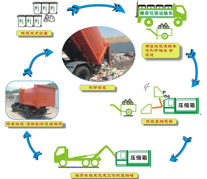 10方智能移動式壓縮垃圾箱效果圖工作流程圖| 移動壓縮垃圾站技術項目 | 技術參數 |
